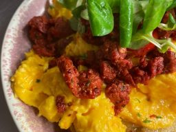 Chorizo Scrambled Eggs – Chorizo, Vine Roasted Tomatoes & Scrambled Eggs on Hot Buttered Sourdough £12.95